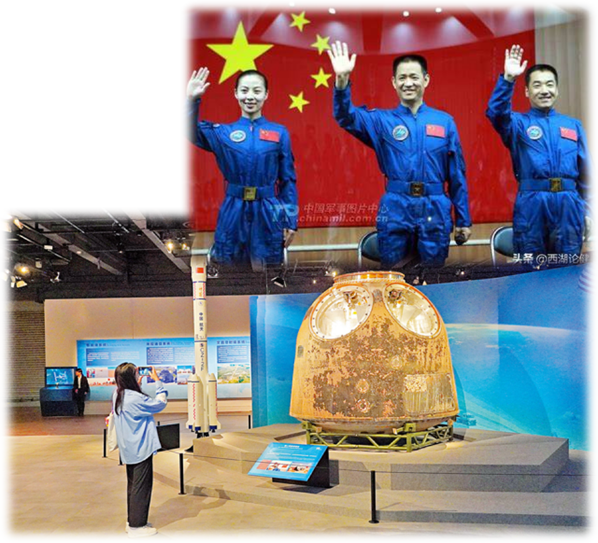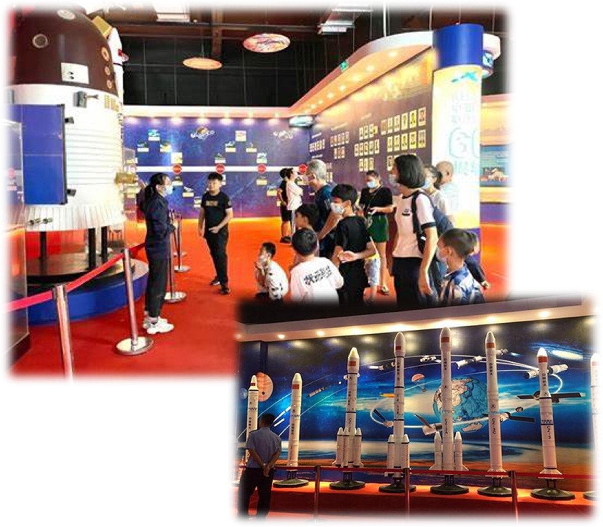 The exhibition also features a 1:3 scale model of a Mars rover, a 1:10 scale model of a space station, a full-scale model of the “Yutu” lunar rover, a full-scale model of the Dongfanghong-1 satellite, a 1:3 scale model of a returnable satellite, a 1:3 scale model of the Haiyang-2 satellite, a 1:4 scale model of the Ziyuan-1 02C satellite, a 1:3 scale model of the Dongfanghong-4 platform satellite, a Beidou networking model, and a full-scale model of the Shenzhou 11 and Tiangong 2 docking module. Visitors can also enjoy immersive lunar surface tours, virtual extravehicular activities (VR), a three-dimensional rotating ring, aerospace virtual dressing experiences, and a dome theater.